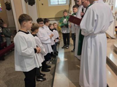 W niedzielę, 12. października 2025 r., w czasie Mszy w. o 10.30 odbyło się uroczyste przyjęcie do grona ministrantów, chłopców z naszej parafii.